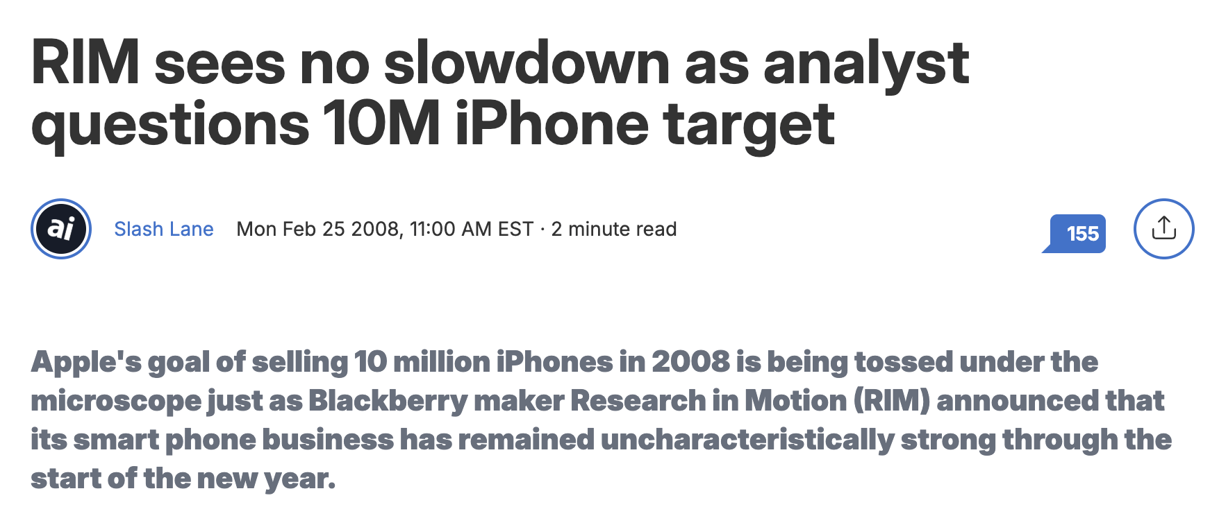 Many dismissed the iPhone as a "toy" for consumers that lacked the serious features business users required. Analysts often questioned the iPhone, even a year after its release.