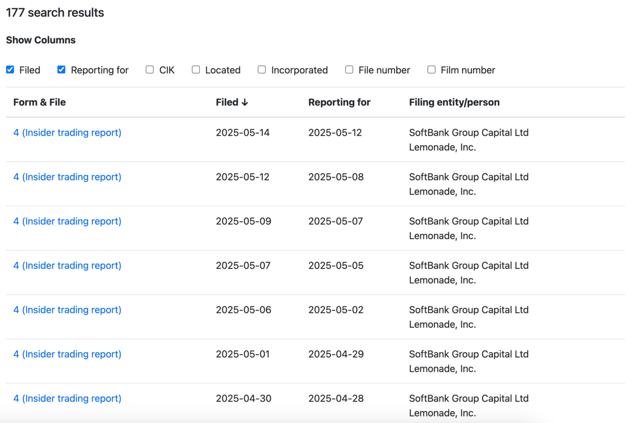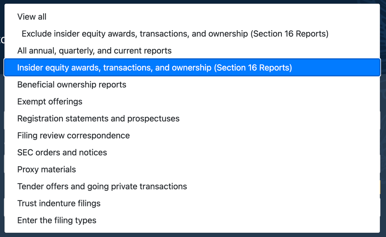 You then get a list of insider sale documents. See the example below.