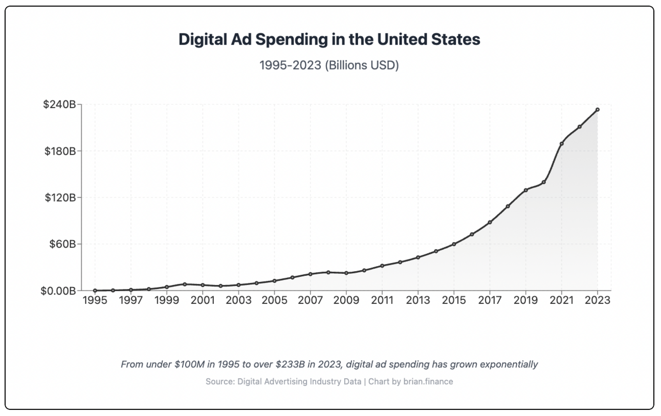 The most compelling visual evidence of this "too early" problem lies in the growth of the digital advertising market itself. Take a look below: