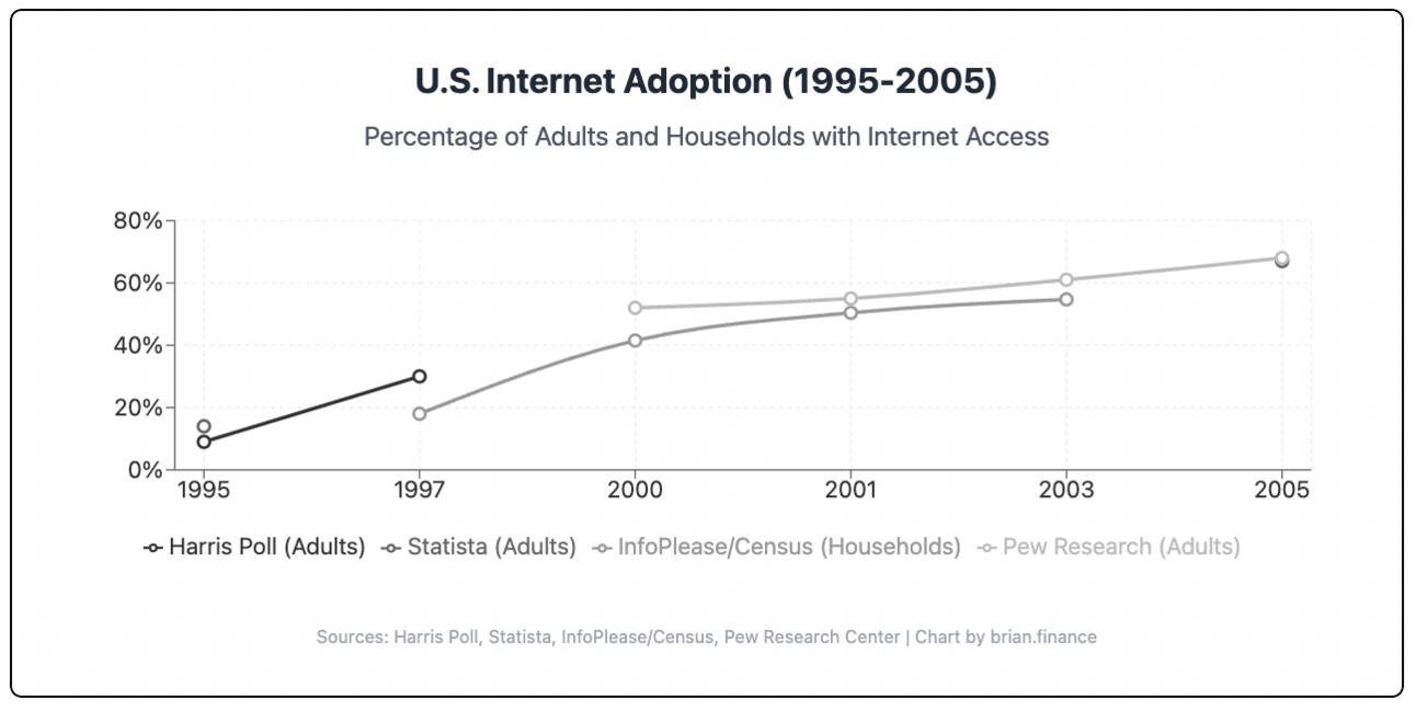 So why didn't Esurance disrupt? And why is now different for insurtechs like $LMND? Long story short: the internet was too young. People weren't yet living their lives online to the extent they do today, and crucially, the direct digital ad market that could bypass agents and broad-based advertising was far too small. Esurance was simply too early.