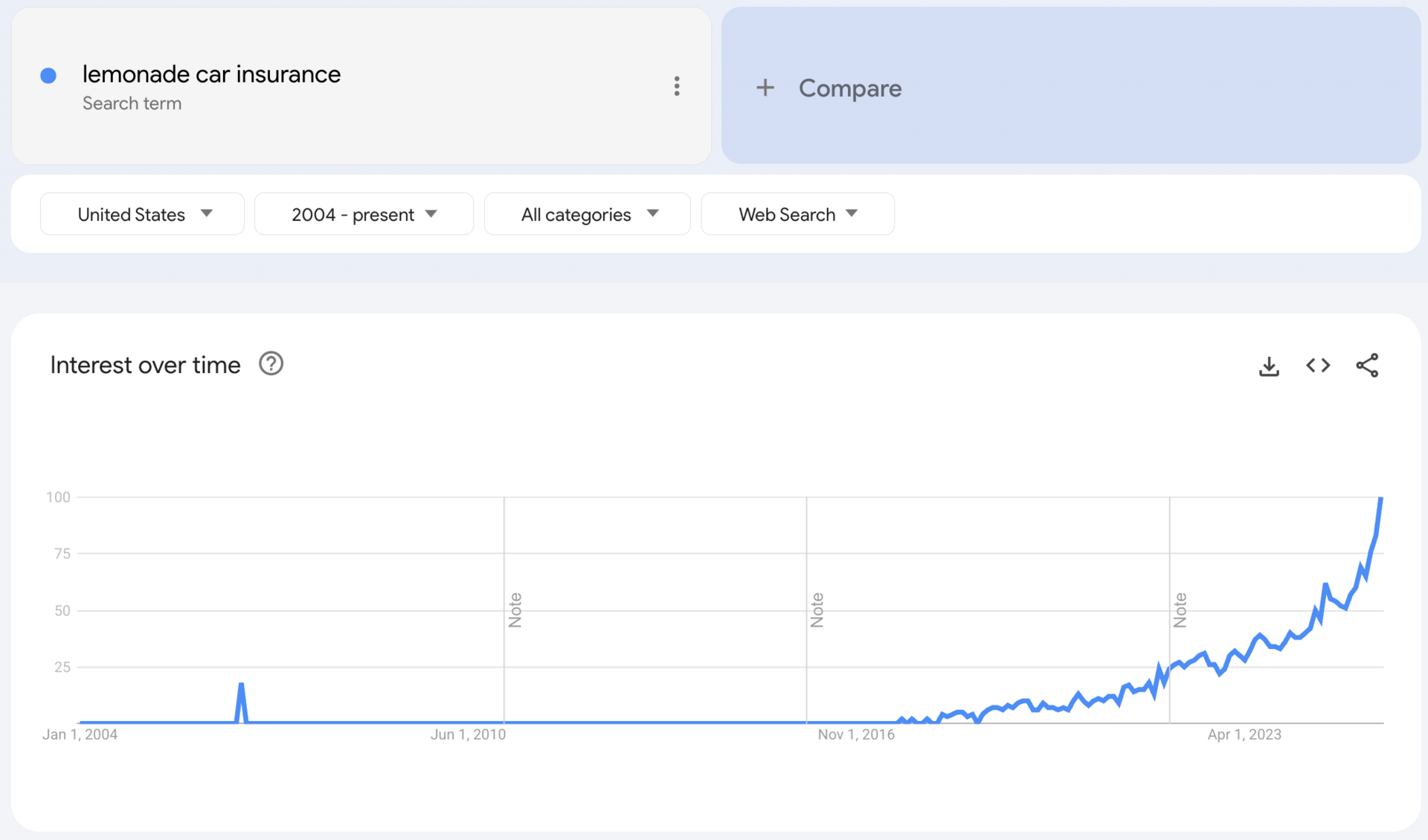 On the revenue side, there is potential for a revenue beat, given that Google Search interest has dramatically risen for Lemonade's main product lines.